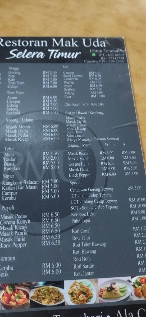 Introducing the menu at Restoran Mak Uda RMU Selera Timur, located in Denai Alam, is a delightful journey through the flavors of the East Coast of Malaysia. This eatery excels in offering a diverse array of dishes, catering to early risers and night owls alike. Breakfast options like nasi lemak, nasi kerabu, and roti canai set the tone for a hearty meal, while lunch showcases plentiful choices for nasi campur enthusiasts.